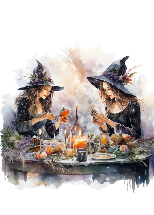 Set of 14 cards and two sheets of stickers "Winter Witches"