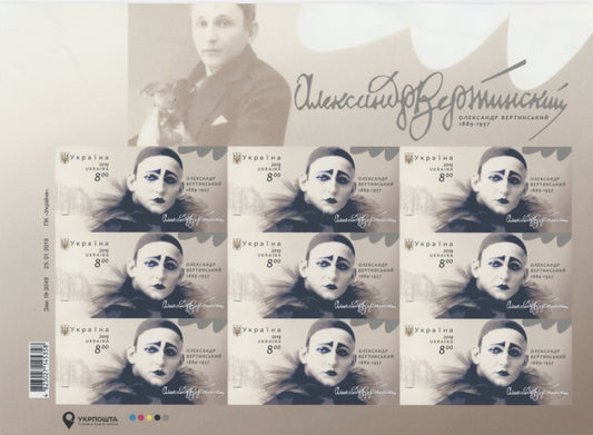 Postal stamp and minisheet "Oleksandr Vertinsky 1889-1957"
