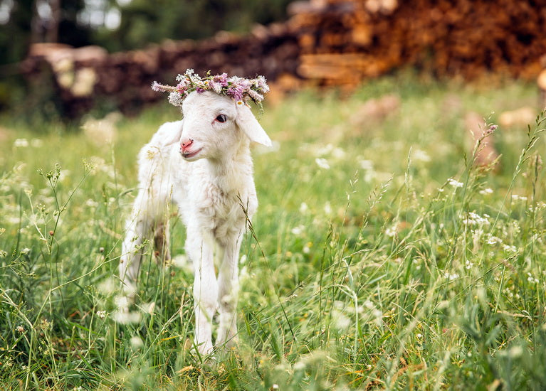 This postcard feels like a gentle hug. A little lamb wearing a crown of wildflowers radiates calm, trust, and soft joy. It seems to whisper, "There is beauty and kindness in the world—just pause and take a closer look."