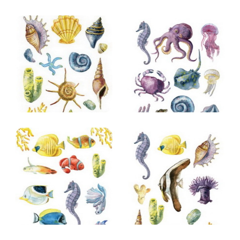 Discover the beauty of the sea with this set of 4 watercolor postcards by Irina Lisova. Each postcard features a unique sea creature, bringing a touch of nature and whimsy to your correspondence. Perfect for sending heartfelt messages, decorating your space, or gifting to a fellow ocean lover. Dive in today!